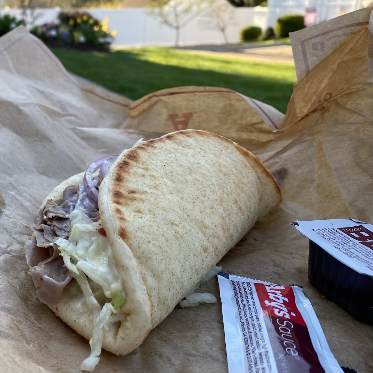 The Roast Beef Gyro: Thinly-sliced roast beef wrapped in a warm pita with lettuce, tomato, red onion and creamy tzatziki sauce. It’s a nice twist on the chain’s classic roast beef concept.