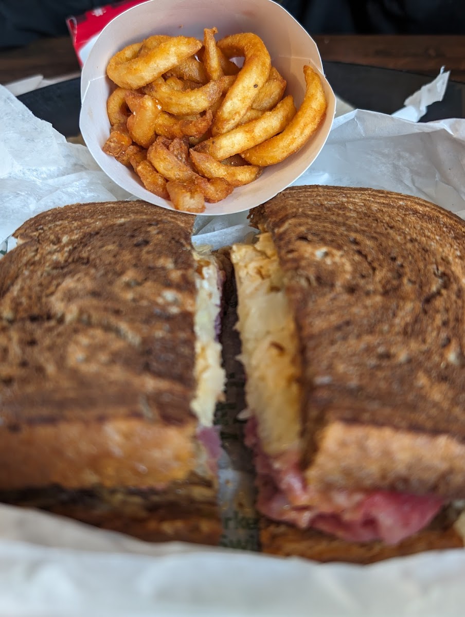 A classic like the Patty Melt or Loaded Curly Fries is always a safe call.